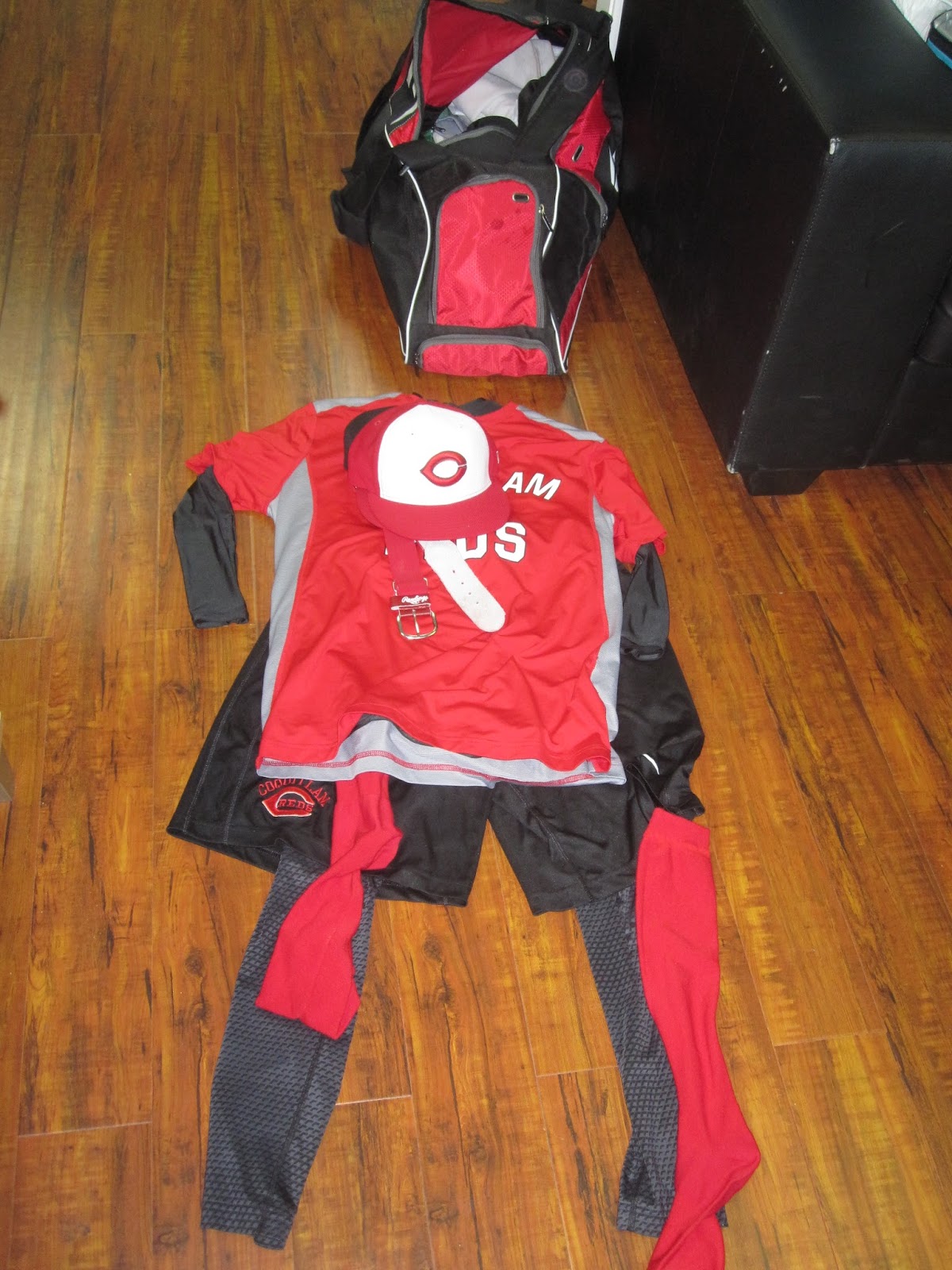 野球のバッグを開けて、服の匂いをチェックし、
