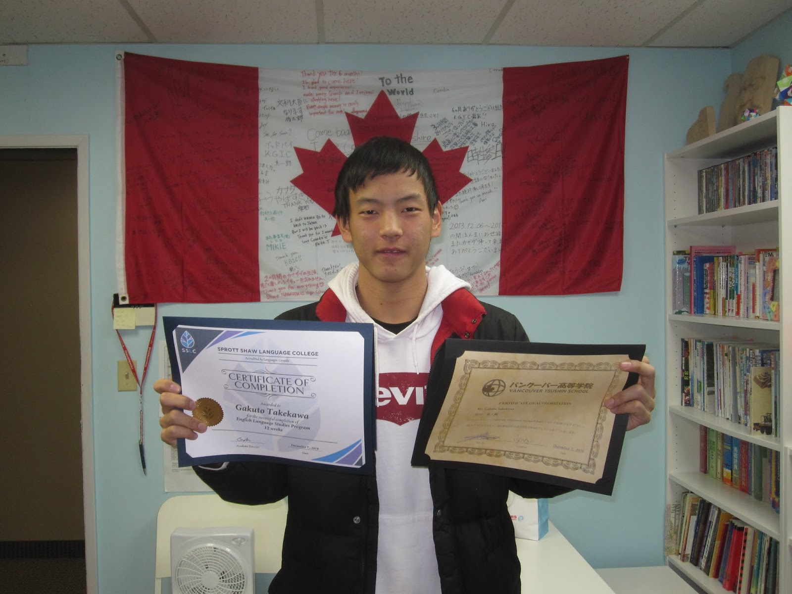 G君最終日 今日は、G君の最終日です。 9月の中旬からカナダに来て約3ヵ月。英語の勉強と野球に頑張りました。 G君は1月にまたカナダに戻ってきます。今度は学生ビザと一緒に。英語の勉強と野球を再開します。 今回の1ヶ月の帰国の時にする宿題もあります。英単語を覚えてきましょう宿題。 1月にまた元気な顔を見せてくださいね。